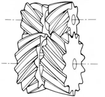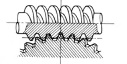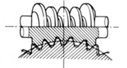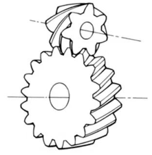 圆柱蜗杆副在交错轴间传动时的名称。可在斜齿齿轮副或斜齿齿轮与正齿轮副的情况下使用。运转虽然平稳,但只适合于使用在轻负荷的情况下。