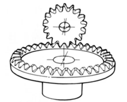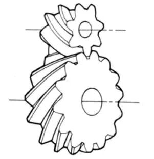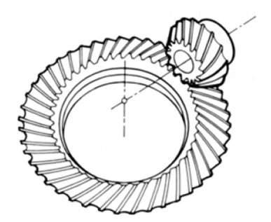 齿线为曲线,带有螺旋角的锥齿轮。虽然与直齿锥齿轮相比,制作难度较大,但是作为高强度、低噪音的齿轮使用也很广泛。