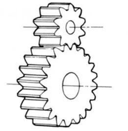 齿线与轴心线为平行方向的圆柱齿轮。因为易于加工,因此在动力传动上使用最为广泛。