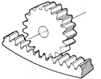 与正齿轮啮合的直线齿条状齿轮。可以看成是正齿轮的节圆直径变成无限大时的特殊情况。