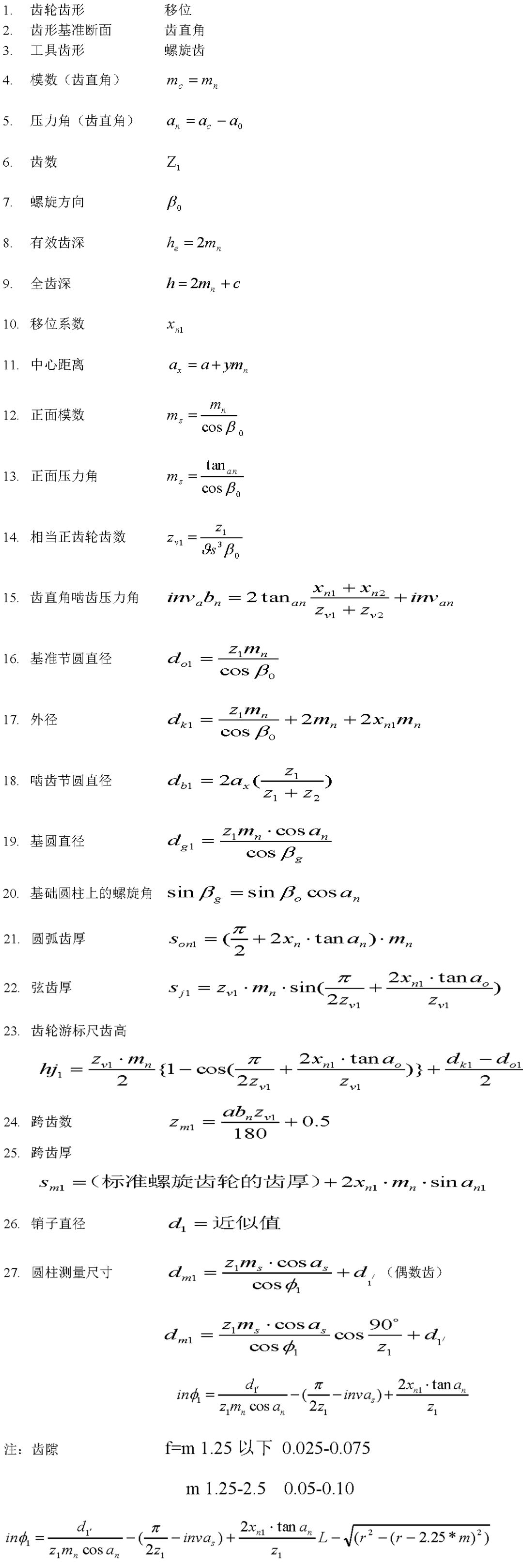 移位螺旋齿的计算公式(齿直角方式)(小齿轮①,大齿轮②)