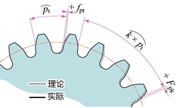 单齿距偏差(fpt)实际齿距与理论齿距的差。