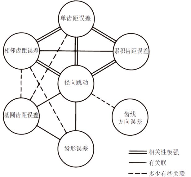 齿轮的各部分精度之间是有关联的,一般来说,径向跳动与其它误差的相关性强,各种齿距误差间的相关性也很强。
