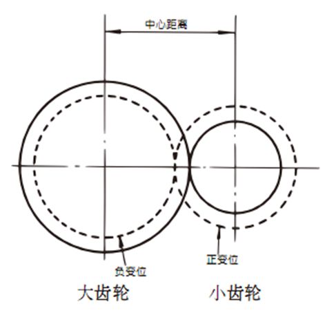 无法改变两个齿轮的中心距时,对小齿轮进行正变位(避免根切),对大齿轮进行负变位,以使中心距相同。这种情况下,变位量的绝对值相等。